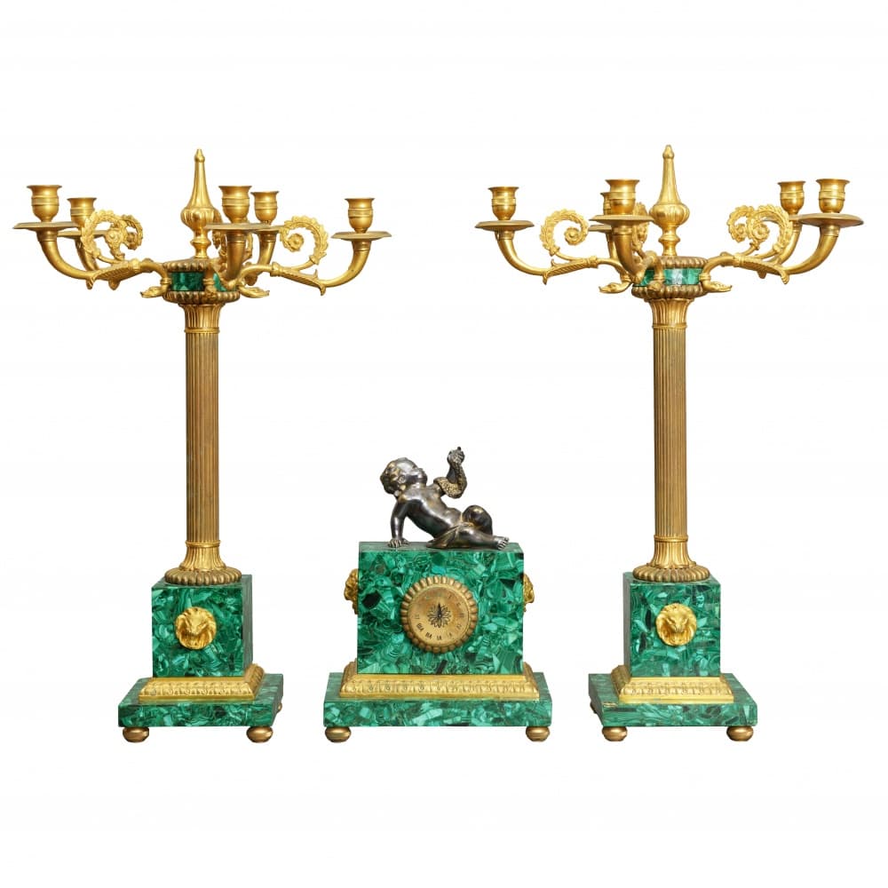 The bronze art section is rather small, but it gives an idea of one of the most wonderful kinds of Russian applied art of the last third of the XVIII century - the early XX century. The collection includes bronze furniture (tables, tables and wall consoles), decorative and fireplace vases, clocks, lighting fixtures (ceiling lamps, lanterns, lamps, wall sconces, table candlesticks and candelabrums). A special sub-section is small interior and sculptural plastic and cabinet items: writing instruments, bells, press - blotters, photo frames. Some pieces of the collection were transferred from the State Historical Museum in 1981, including inkstands and candlesticks of the 19th century. Several items were received by the museum from donors, including two alarm clocks made in the 1890s by the Moser watchmakers and by Pavel Bure firm, received as a gift from G.A. Kubryakov. Most of the items in the collection were purchased by the museum in the 1980s, including a mid-XIX century mantelpiece made of bronze and malachite, consisting of a clock and two candelabrums.