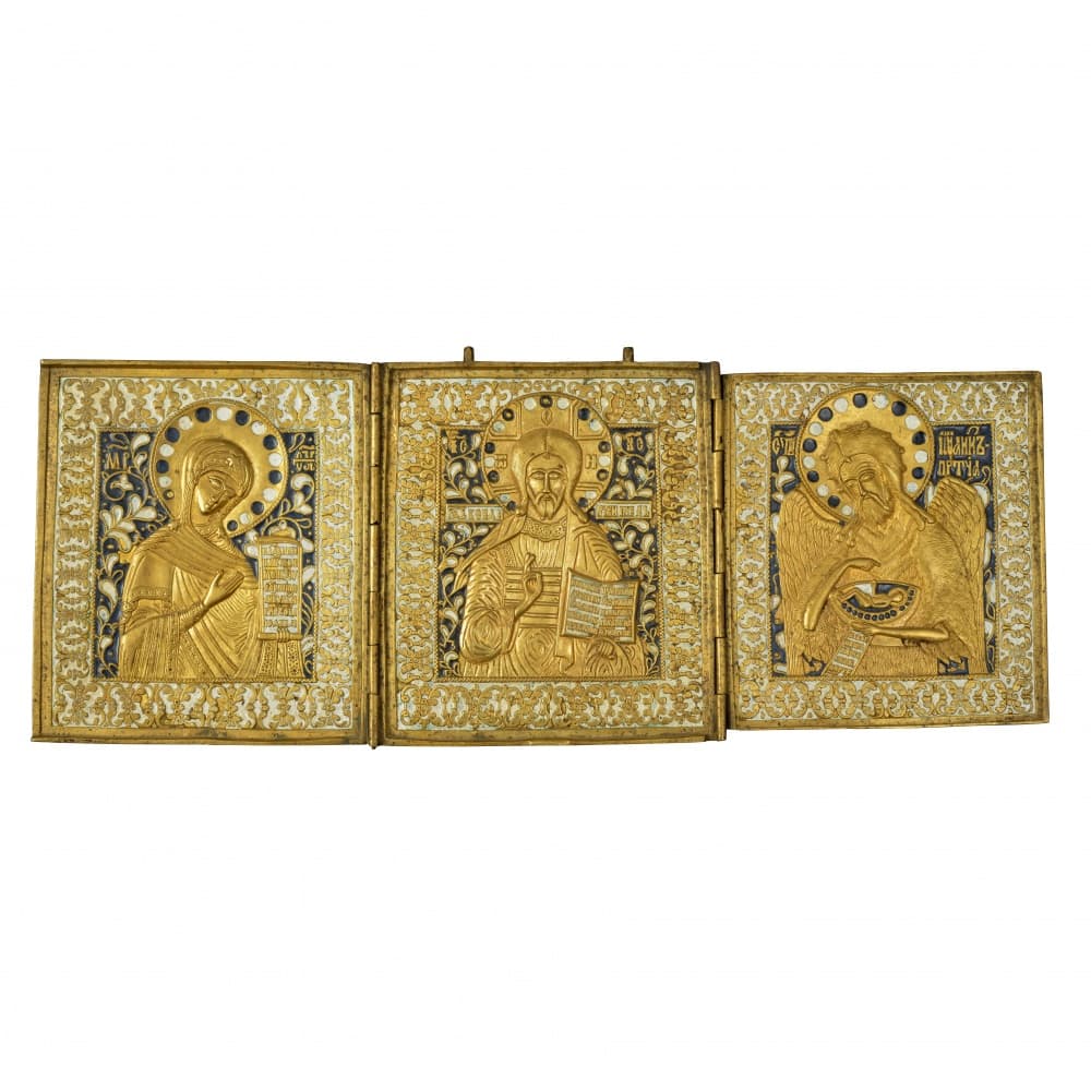 Christian copper sculpture is notable for the variety of its technological execution. The collection includes icons of the so-called slotted casting, known since pre-Mongol times: The Miracle of St. George Upon the Serpent, Nicholas of Mozhaisk, Saints Boris and Gleb, and the Archangels Michael and Gabriel. Copper-cast images were often adorned with polychrome enamel, which gave the mass production of copper works an artistic individuality. A valuable monument of Old Believer culture that graced the metal collection was an icon board with three embedded copper icons from the second half of the 19th century.