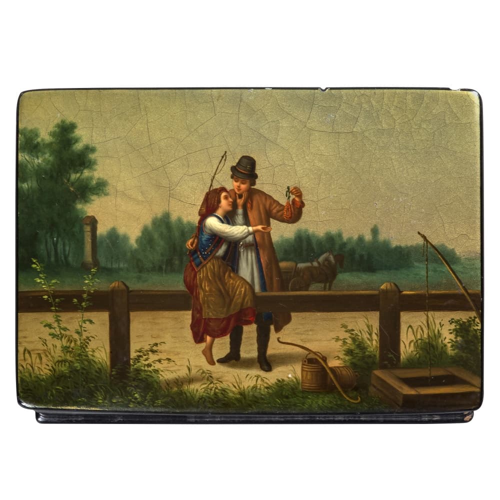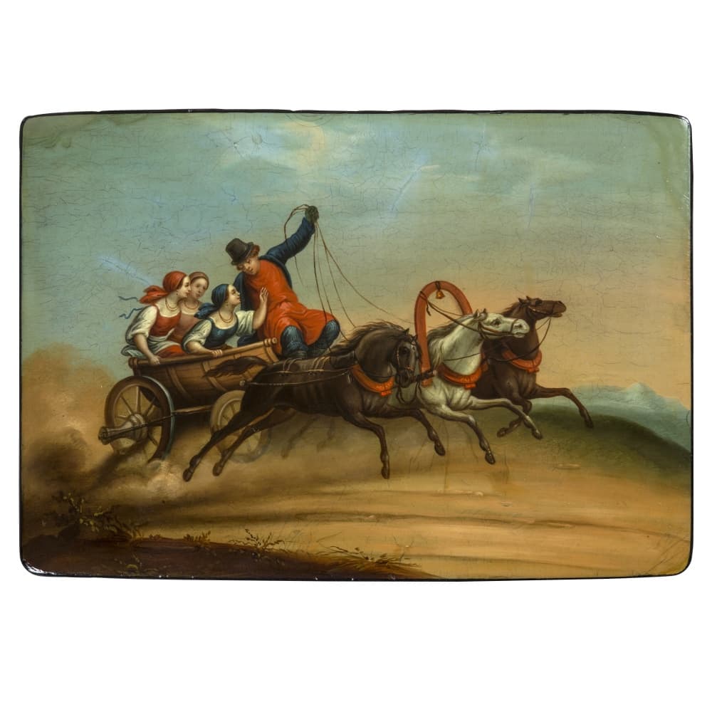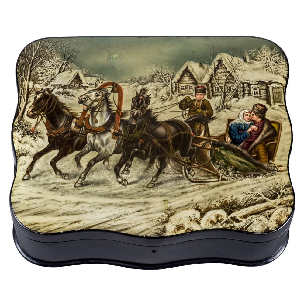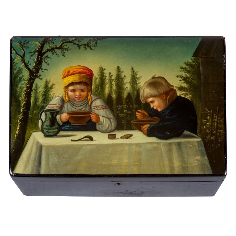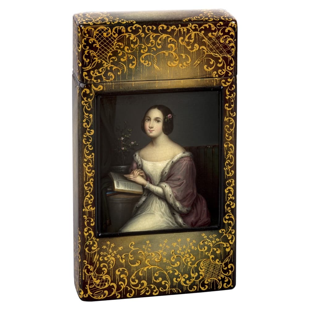 В музее собрана достойная коллекция «лукутинских» лаков, названных так по фамилии владельцев мануфактуры – московских купцов XIX – начала XX века Лукутиных. Изделия мануфактуры отличались превосходным качеством, получали высокие награды на отечественных и зарубежных выставках. Не менее известными были лаки «вишняковских» мастеров. Владельцы мастерских братья Вишняковы ориентировались на разные социальные слои, выпуская как дорогие, так и доступные по цене товары. В собрании представлено большое разнообразие предметов, изготовленных «лукутинскими» и «вишняковскими» мастерами – шкатулки, чайницы, спичечницы, бювары, трости, альбомы, погребки, кошельки, портмоне, сигарницы, табакерки, дорогие коробки для документов, очечники, пеналы и пр. Не менее разнообразны и сюжеты лаковой миниатюры, среди которых встречаются жанровые сцены сельской и городской жизни, исторические события, портреты выдающихся государственных деятелей и народные типажи, воспроизведения отечественной и зарубежной станковой живописи. Среди предметов этого периода можно выделить великолепные работы «вишняковских» мастеров XIX века: альбом «Обедающая девушка», «Возвращение с покоса», «Тройка зимняя», которые представлены в постоянной экспозиции музея.