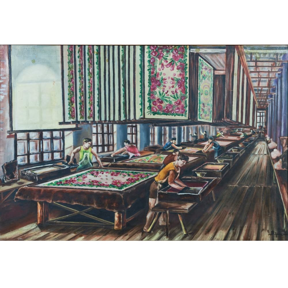 The works shown there were partly created especially for the exhibition; they were selected by sketches and on the basis of that selection the canvases, paints, and monetary remuneration were sent to the authors; other works though were created earlier. The works were purchased by the Glaviskusstvo commission from the exhibition and transferred to the Tretyakov Gallery. In the 1950s, the State Tretyakov Gallery transferred these works to the Moscow Regional House of Folk Art. In 1960, the Moscow Regional House of Folk Art gave them as samples to the Correspondence People's University of Arts. In 2001, the Correspondence People's University of Arts transferred them to the State Russian House of Folk Art.