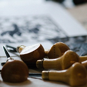 In our workshop you have a wonderful opportunity to print your works on a professional etching machine. Attend just one lesson, and you will be able to create your own printing plate and make a few prints with it, not only on paper, but also on a linen bag that you can keep as a memento of your engraving experience. Color choices, paper textures, and your own style make each print unique. After the very first lesson, you will be able to use newly acquired skills at home. What’s next? For our regular attendees, we are ready to reveal new horizons of different printing techniques.
