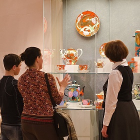Экскурсия посвящена отечественному фарфору 1920 – 1980 годов. Все важнейшие события истории нашей страны нашли отражение в советском художественном фарфоре. Музей обладает уникальной коллекцией агитационного фарфора. В ней собраны авторские работы самых известных художников, работавших в этом материале, существующие в единственном экземпляре или в авторском повторе: С.Чехонина, М.Адамовича, Р.Вильде, Н.Данько, З.Кобылецкой, А.Щекотихиной-Потоцкой, М.Ивашинцевой. Вы познакомитесь с изделиями Ленинградского, Дулевского, Дмитровского заводов. Узнаете, что их объединяло и в чём своеобразие каждого из них. Узнаете, откуда появилось выражение «на блюдечке с голубой каёмочкой» и где расписывали чашки, которые держат в руках героини картин Бориса Кустодиева.Один из самых больших по количеству экспонатов раздел – авторский фарфор 1960 – 1980-х годов – представлен в экспозиции уникальными выставочными работами ведущих художников: А.А.Лепорской, Н.П.Славиной, В.М.Городецкого, И.С.Олевской (Ленинградский фарфоровый завод); А.Д.Бржезицкой, П.С.Леонова, А.Г.Сотникова, Е.И.Гатиловой (Дулевский фарфоровый завод); Б.Е.Калиты, С.М.Орлова, Е.П.Смирнова, Ю.Б.Ганрио (Дмитровский фарфоровый завод).