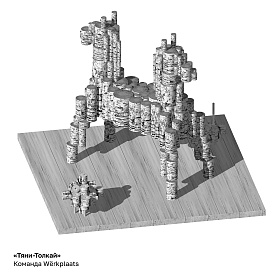 Проект «Тяни-Толкай» - арт-конструктор, переосмысление народных и современных игр и игрушек, где используются модули из березового бревна, позволяющие создавать новые объекты.