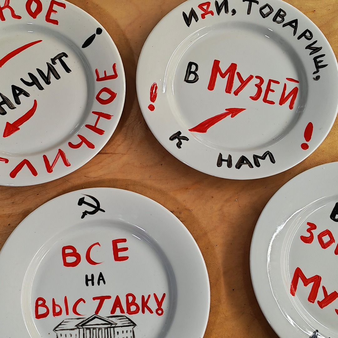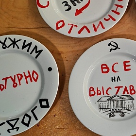 На керамических тарелках, специальными красками по керамике, с помощью наших ведущих и своей безграничной фантазии, мы напишем любимые лозунги со знаменитых советских плакатов, или подсмотрим на нашей выставке, чем же можно удивить дельфина и сообщим об этом, на своем авторском предмете!