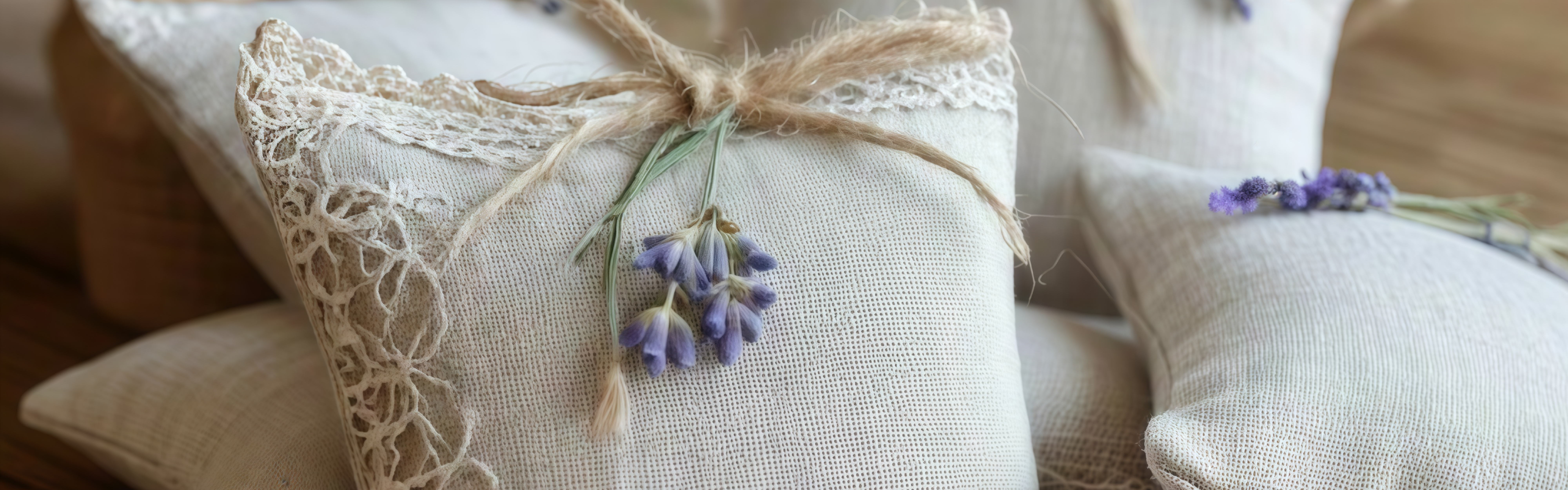 травами и ароматическими компонентами, декорирование кружевом, лентами и