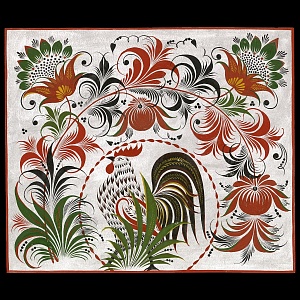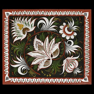Альбомы «Хохломской орнамент. Ч. I» и «Хохломской орнамент. Ч. II» – особая гордость коллекции. Они созданы Семёном Петровичем Веселовым, племянником легендарного Фёдора Бедина и учеником Архипа Михайловича Серова.