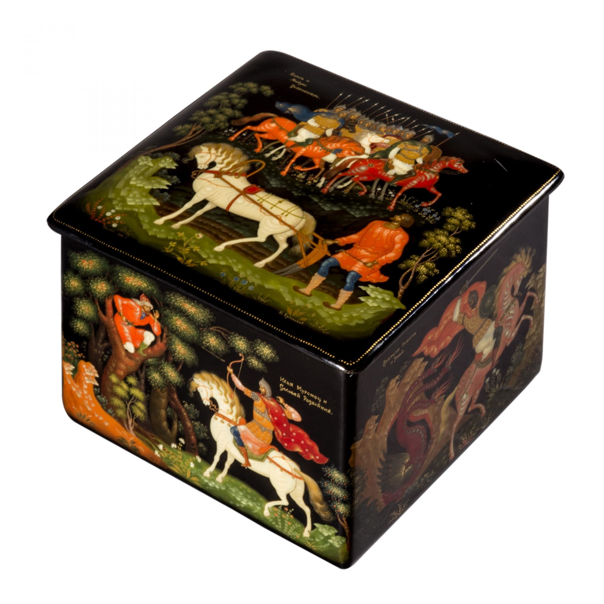 Папье-маше, лак, темпера, золото твореное, порошки металлические, живопись миниатюрная