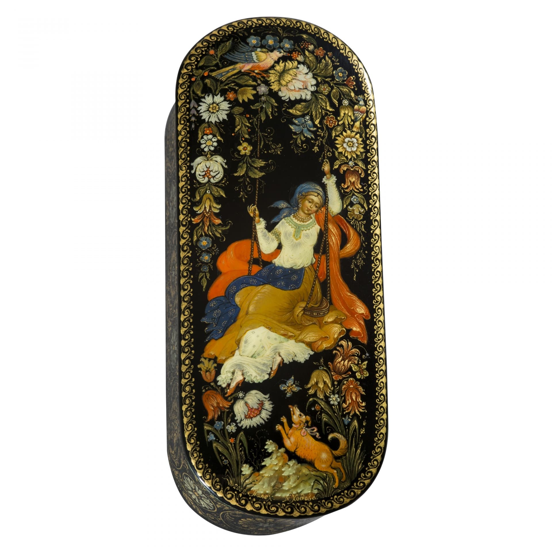 Татьяна Михайловна Ходова (Телевинова) Ивановская область, Палех 2008 год Папье-маше, лак, темпера, золото твореное, порошки металлические, живопись миниатюрная © Всероссийский музей декоративного искусства