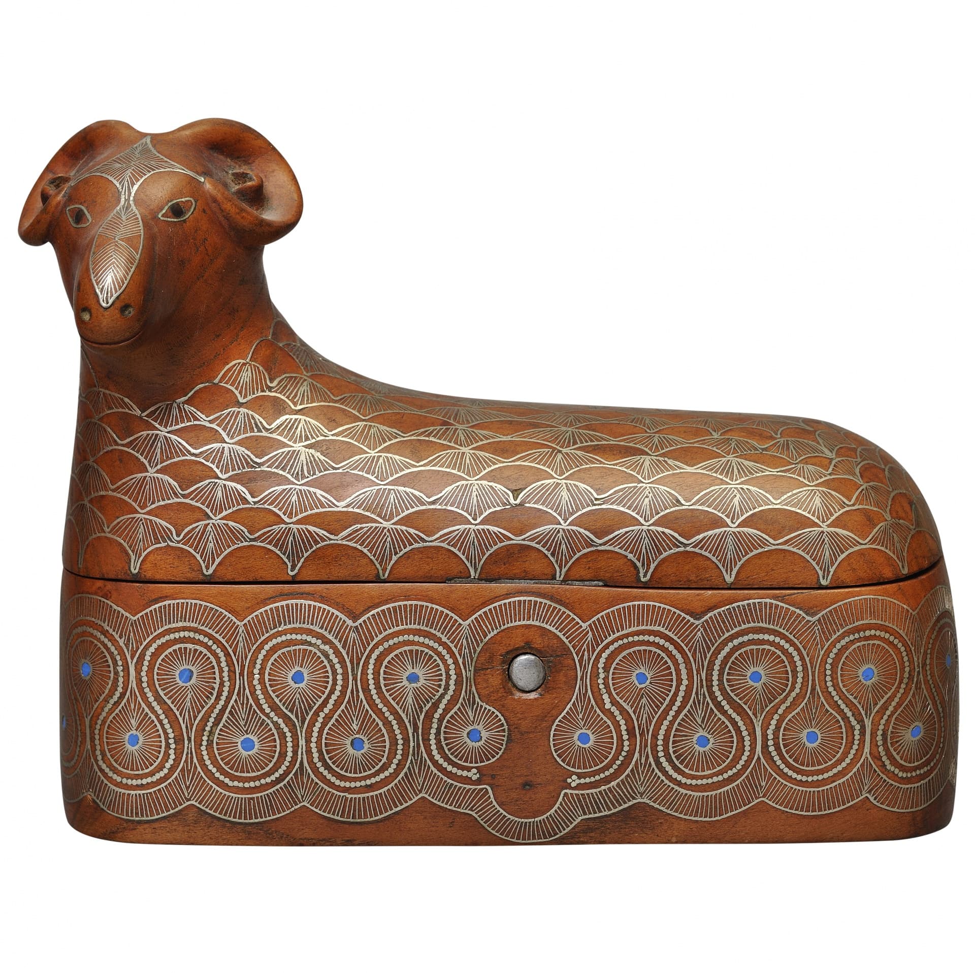Небольшая, но интересная коллекция произведений лучших гуцульских мастеров художественной резьбы по дереву 1940-х годов также представлена в нашем собрании. Нарядные произведения, шкатулки и декоративные блюда, поражают тонкой резьбой и богатой инкрустацией разноцветным бисером, деревом, перламутром и металлом.
