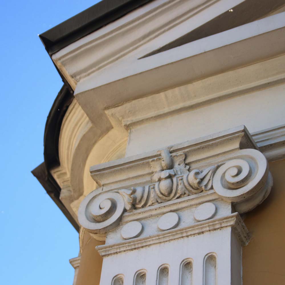We invite you to take a walk around the estate complex, feel the spirit of past eras and immerse yourself in the history of our city. We will finish our acquaintance with the architecture of the estate inside the building.
