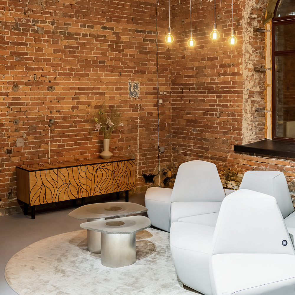 The exhibition presents items of nominees and winners of the competition-biennale of object design "Designed and Made in Russia": Grand Prix winner - chair "Uryndyk" by Pyotr Safiullin, winner in the category of industrial design - a collection of lamps Paper Cones by Lilia Makarova and others.