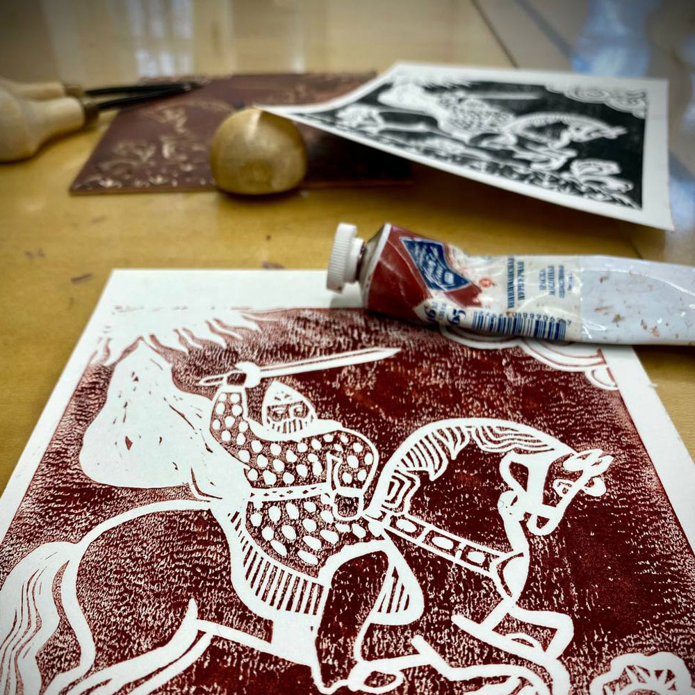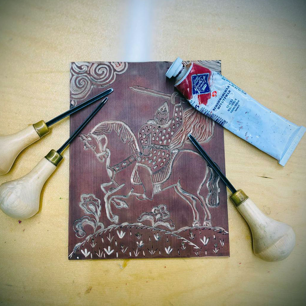 Приглашаем детей от 7 лет и взрослых на мастер-класс по линогравюре! Тема – образ самого известного богатыря Ильи Муромца. «Портрет» богатыря у каждого участника получится свой: сильный и добрый, смелый и надёжный.