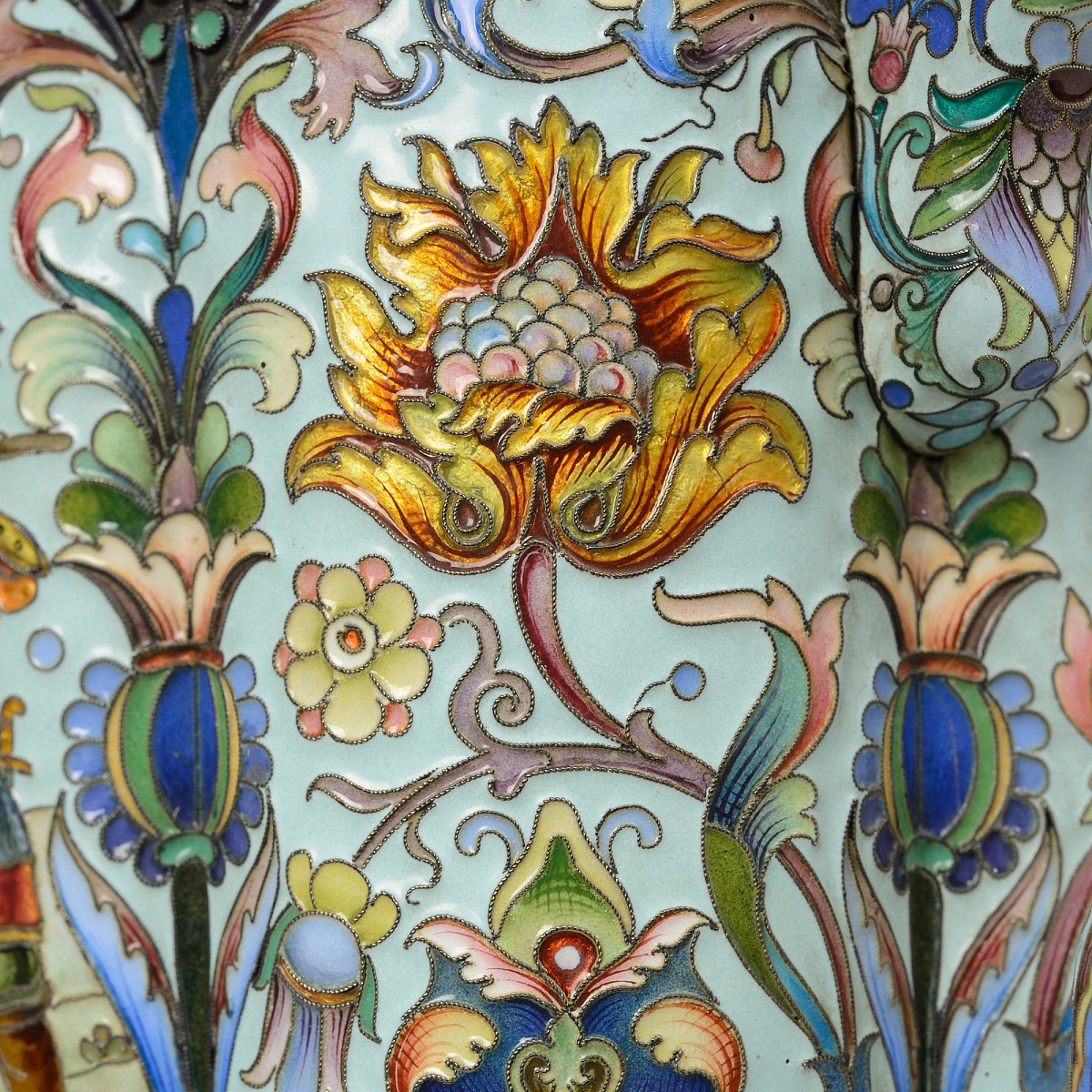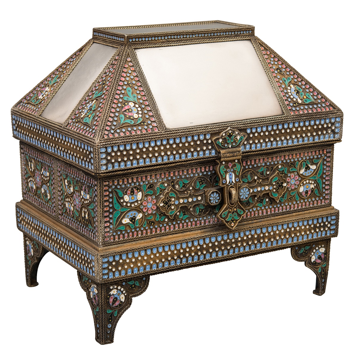 Второй раздел выставки представляет русское искусство эмали: от XVII столетия до наших дней. Произведения иллюстрируют расцвет самобытной отечественной эмальерной школы и ее органичное включение в общеевропейскую художественную традицию. Особого внимания заслуживает раздел, посвященный второй половине XIX – началу XX века – эпохи «Русского стиля», «золотого века» отечественной эмали.