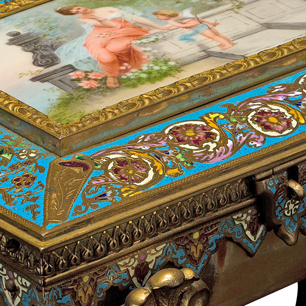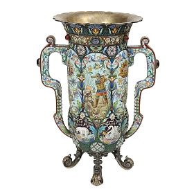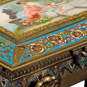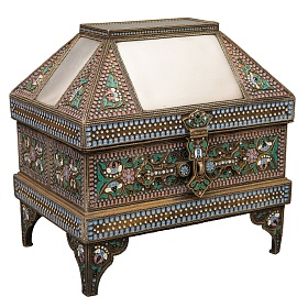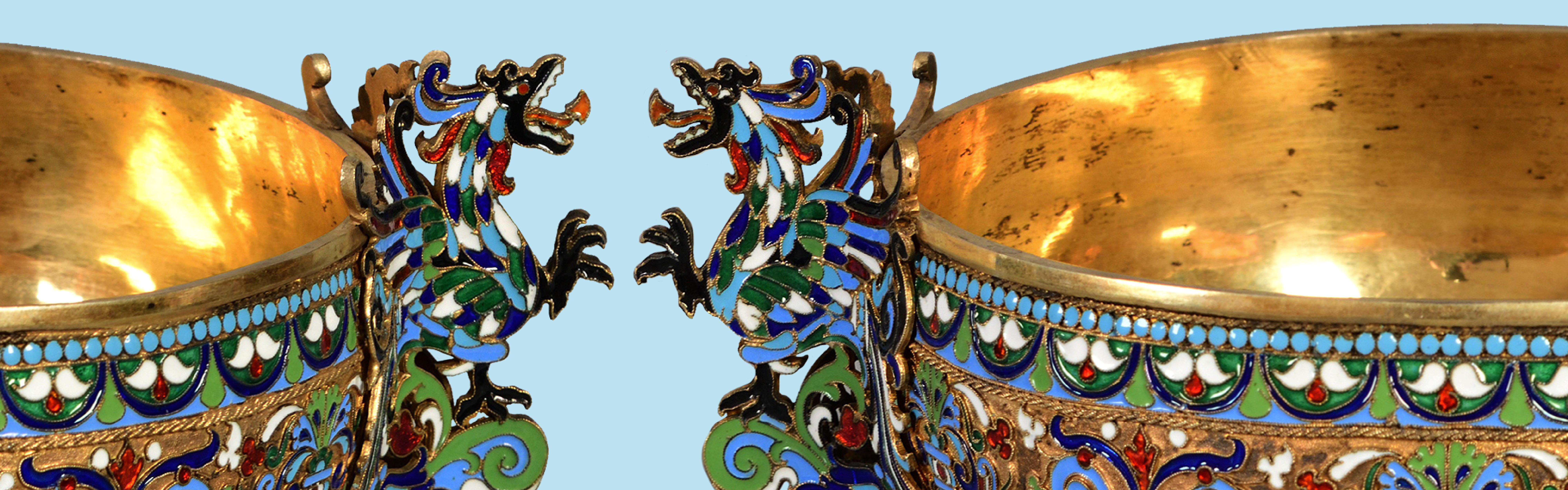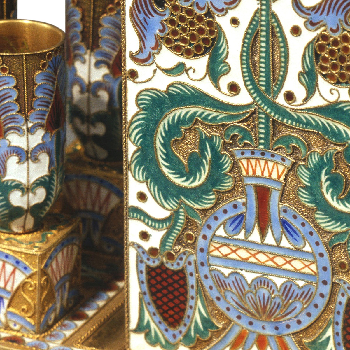 В экспозиции представлены шедевры эмальерного искусства прославленных мастеров и фирм этого времени: Фаберже, Овчинникова, Хлебникова, Рюкерта, Сазикова, Постникова, Курлюкова, Оловянишникова и др., а также произведения знаменитой мастерской княгини Тенишевой.
