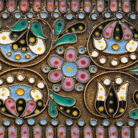 Экспонаты этого раздела демонстрируют все многообразие техник и стилей – от «агитационных» эмалей до пейзажных панно, произведения знаменитой фабрики «Ростовская финифть» и концептуальные авторские работы.