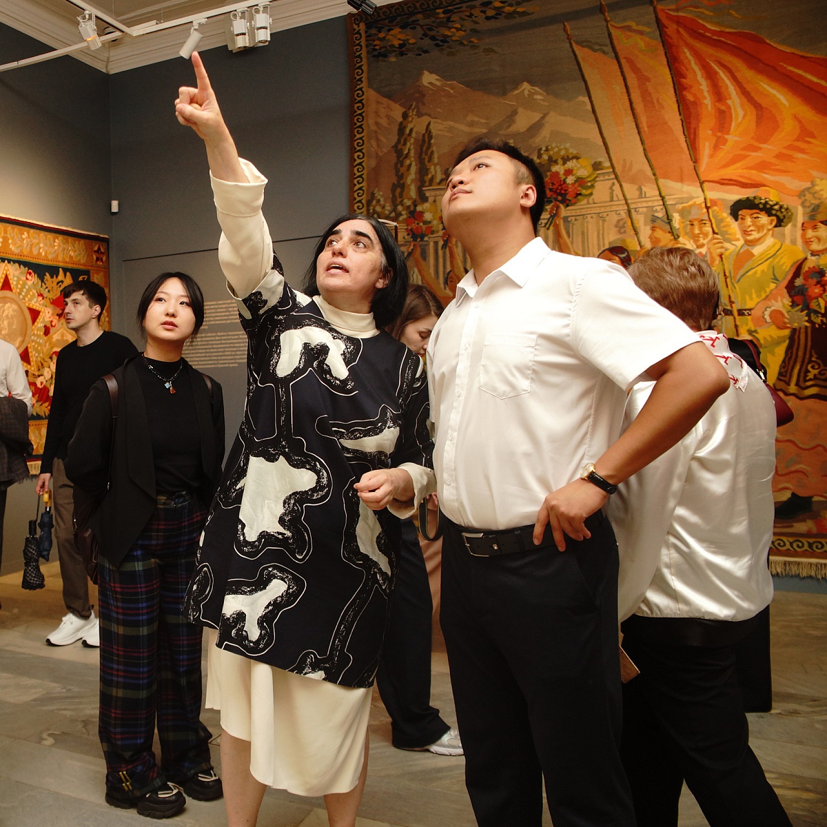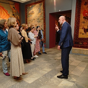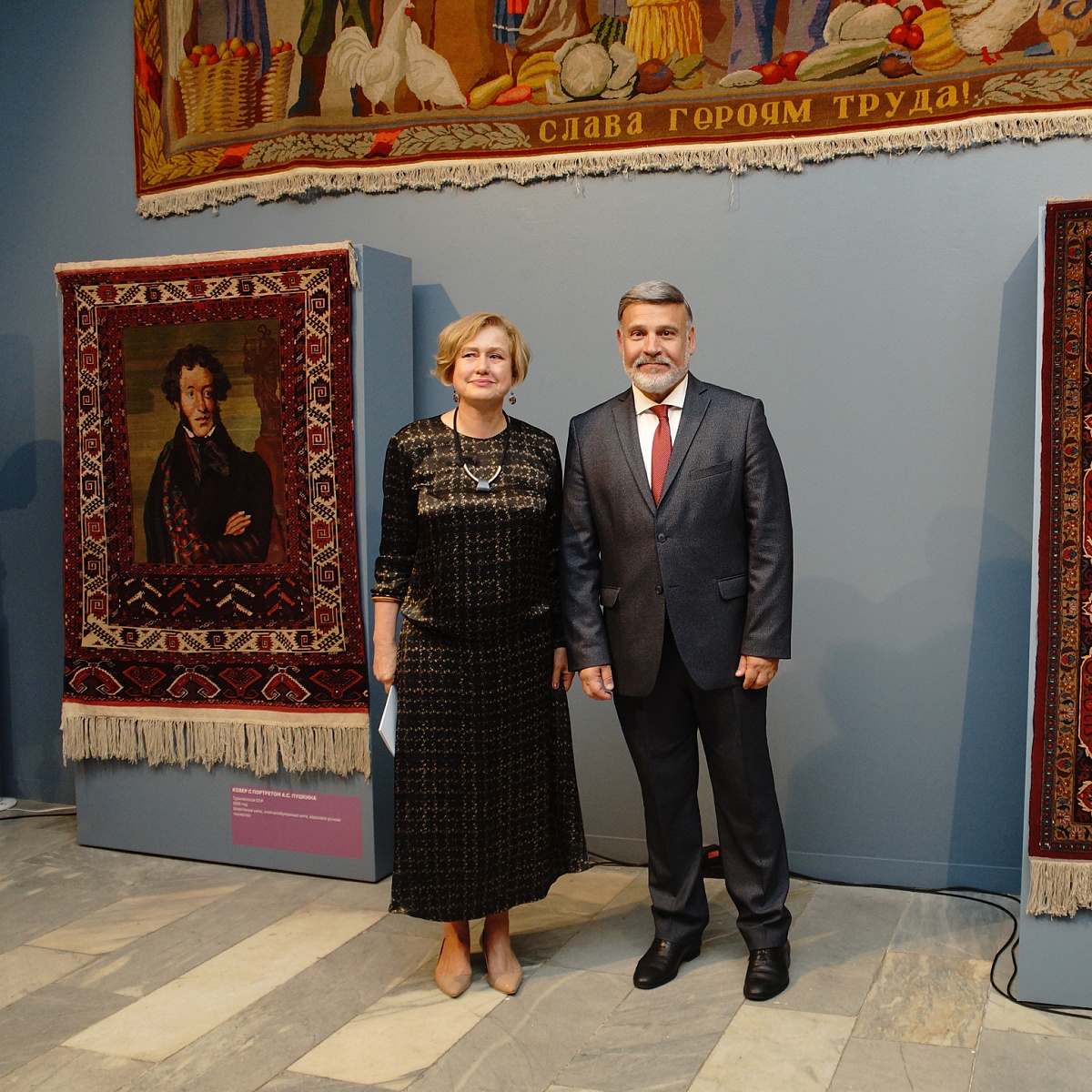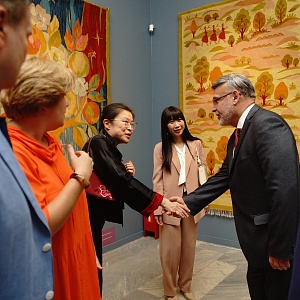На церемонии открытия выставки присутствовали представители дипломатического корпуса. Посол Перу в России Хуан дель Кампо Родригес в сопровождении Хуана Море Оучи с интересом слушал рассказ о символических смыслах орнаментов и советских сюжетах. Большой интерес к выставке проявила китайская делегация во главе с госпожой Гао Янь, супругой Чрезвычайного и Полномочного Посла Китая в России Чжана Ханьхуэя. Они увлеченно изучали экспонаты, всматривались в детали, задавали вопросы и покинули залы последними из гостей перед самым закрытием. Посольство Азербайджана было представлено Советником-посланником по гуманитарным вопросам Зауром Пашаевым. Присутствие этой страны было особенно приятно, так как ковры азербайджанских мастеров занимают значительное место в экспозиции. В общей сложности число гостей из дипломатических миссий превысило 20 человек.