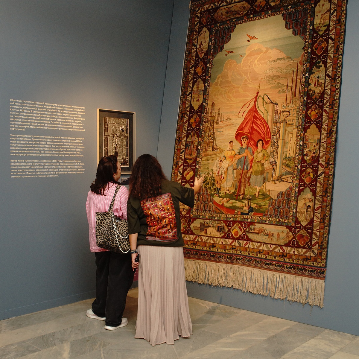 Во Всероссийском музее декоративного искусства открылась выставка «Ковёр историй. Сюжеты советского коврового искусства». Десятки экспонатов, семь залов — история большой страны, сотканная из традиционных народных мотивов, советских идеалов, представлений о счастье и изобилии. Спорт, космос, труд, целые города…
