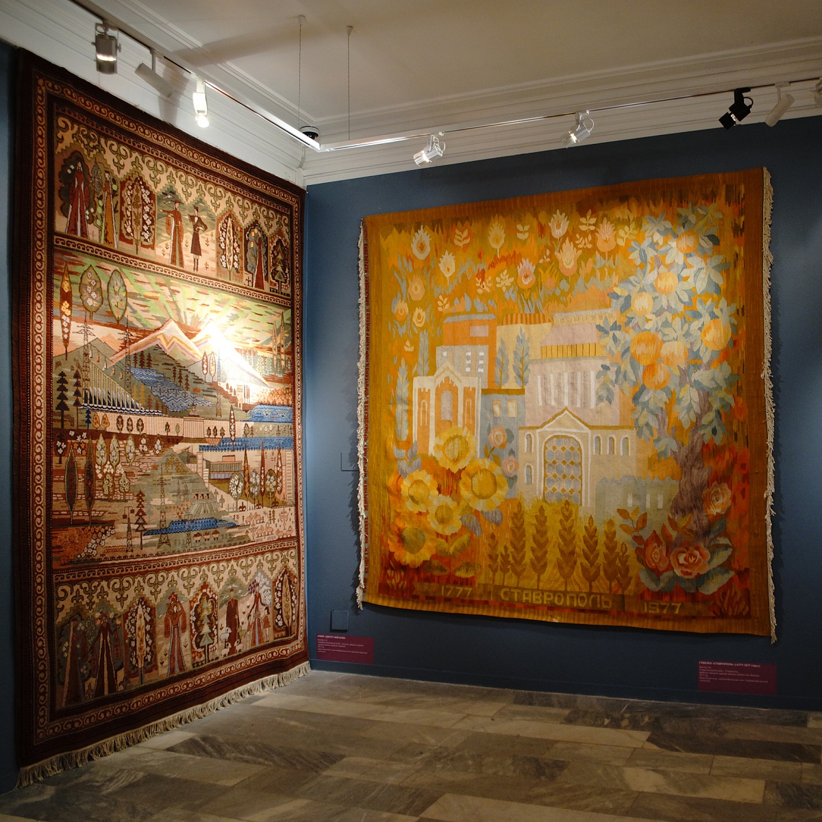 Значительная часть ковров создана в 1930-1980-е годы в традиционных центрах ковроткачества России, Кавказа и Средней Азии. Это шедевр «Рог изобилия», сотканный курскими мастерицами специально для выставки в Нью-Йорке (1939 г.). Завораживающий омский ковер-карту «Иртыш» (1959), посвященный освоению Сибири. Знаменитый туркменский ковер «Конный пробег» (1937 г.), посвященный переходу туркменских лошадей по маршруту Ашхабад – Москва.