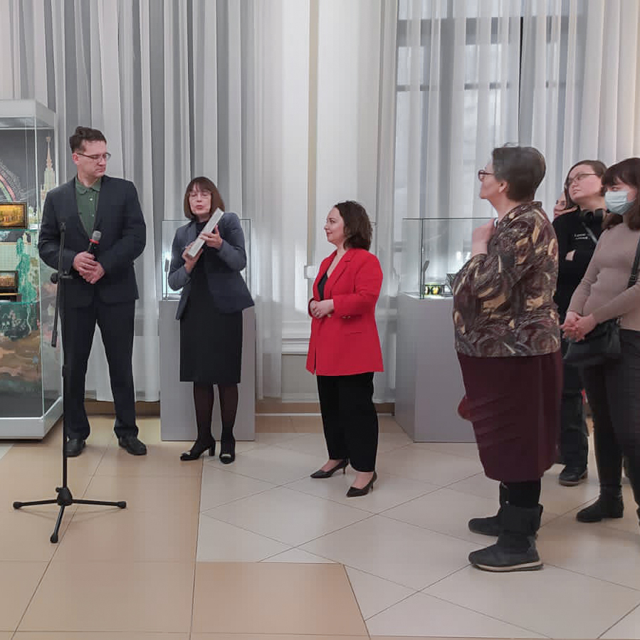 Во время открытия представители Всероссийского музея декоративного искусства подарили книгу «Русская лаковая миниатюра. Краткая энциклопедия. Пирогова Л.Л.» сотрудникам Новосибирского государственного краеведческого музея, а куратор провела авторскую экскурсию.