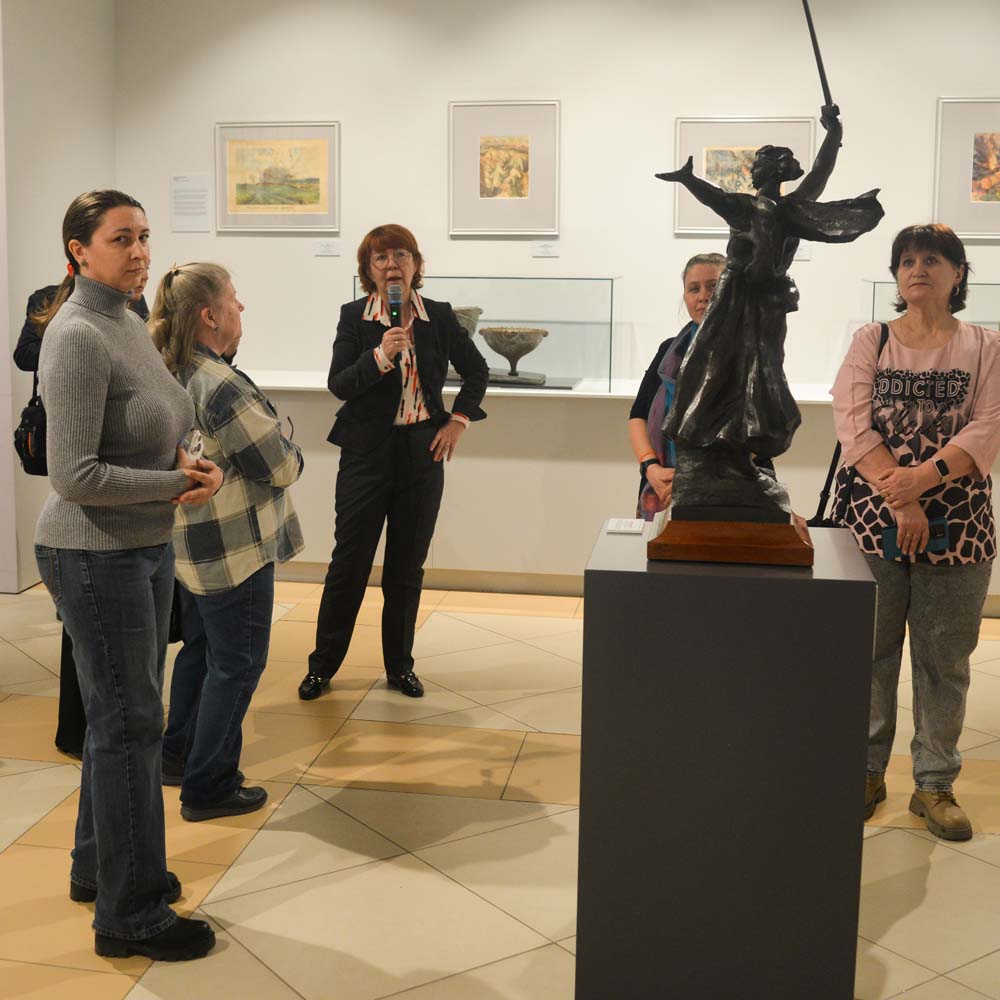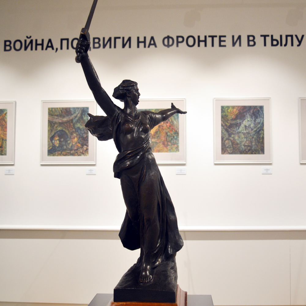 Сразу после церемонии открытия Ирина Шалугина провела авторскую экскурсию для гостей, представив ключевые экспонаты и художественные образы, раскрывающие силу духа и художественное мастерство поколения победителей.