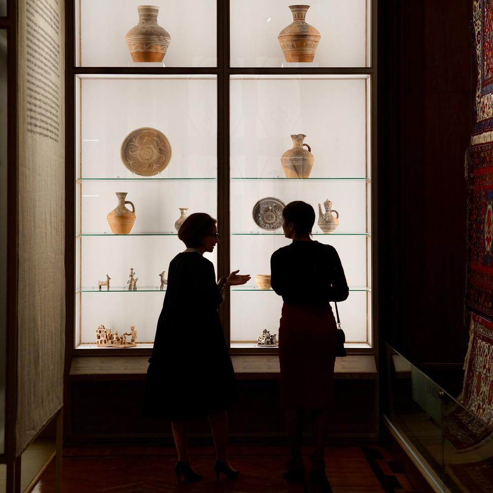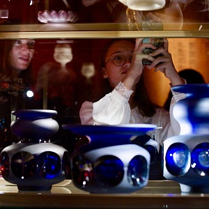 На одной площадке соседствуют гусь-хрустальное стекло, якутская кость и балхарская керамика. Каждый из отобранных предметов – легенда, один другого значимее, интереснее. Удивительная сочетаемость, казалось бы, удаленных друг от друга традиций и регионов. Такую цельную композицию показывают впервые. Куратор выставки – Нина Гомиашвили, специализируется на фотопроектах, и через эту необычную оптику в музее хотела показать иной взгляд на народные промыслы.
