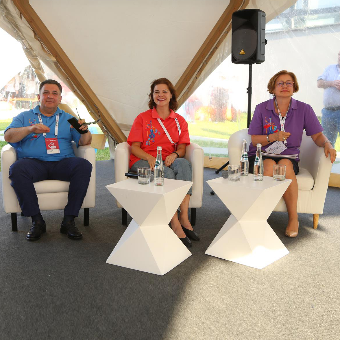 Директор музея вместе с Михаилом Брызгаловым, директором Российского национального музея музыки и Анной Яловой, директором Центрального выставочного зала «Манеж» (Санкт-Петербург) рассказывали о интересных проектах с точки зрения молодёжной аудитории, размышляли о том, каким должен быть современный музей, как привлечь посетителей и каких впечатлений они ждут.